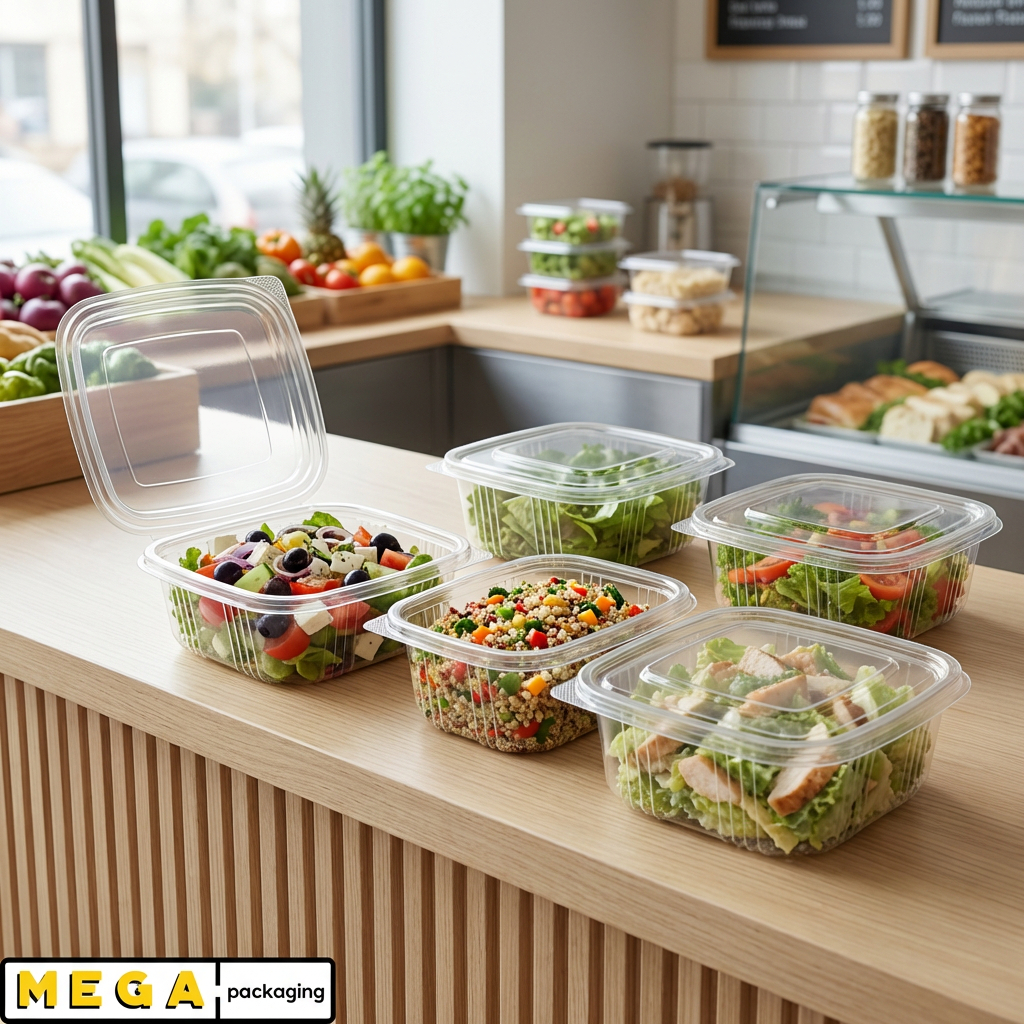 Return To ShopA spacious and eco-friendly container for your salad needs. This hinged container is perfect for restaurants, cafes, and takeaway establishments. Its large size makes it ideal for generous portions of salads, perfect for sharing or satisfying larger appetites. The hinged lid ensures a secure seal, keeping your salad fresh and preventing spills. Made from recyclable materials, this container is a sustainable choice for your business. Suitable for cold use only, various uses with desserts and much more.